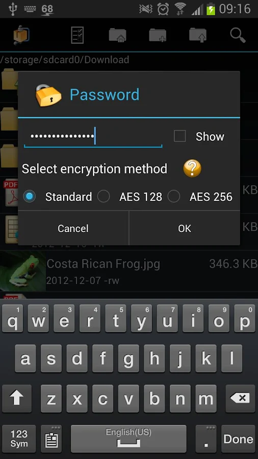 Upload your files, photos, videos to your Dropbox account and manage your Dropbox files. You can also protect/encrypt your files with AndroZip™ as encrypted ZIP files.